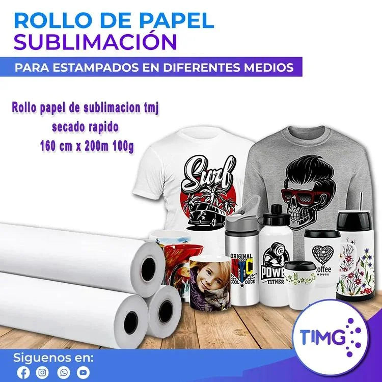 Rollo papel de sublimacion tmj secado rapido 160 cm x200m 100g