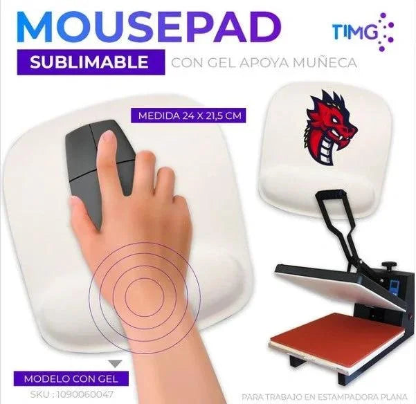 Mousepad sublimable con gel apoya muñeca. Leer más...