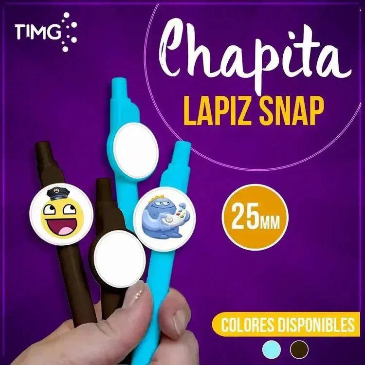 Chapita Lápiz Snap 25mm en colores | Bolsa 20 unidades para personalizar con estampado, stickers o sublimación | Ideal para emprendedores