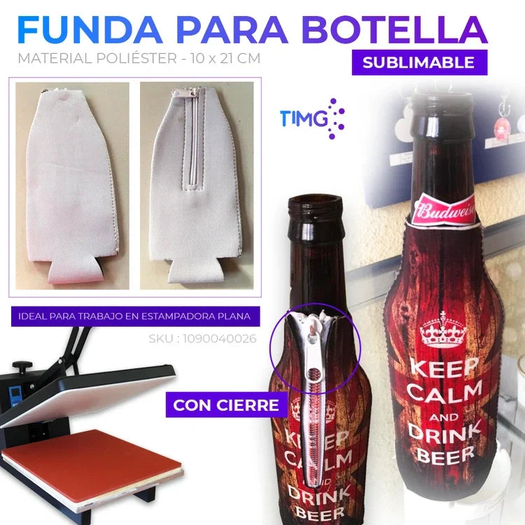 Funda para Botella Sublimable con Cierre - Poliéster 10 x 21 cm