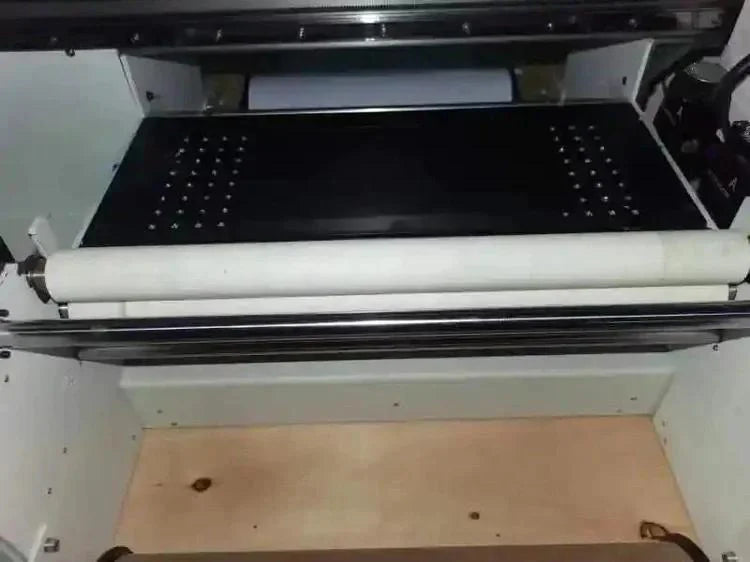 La cama de arrastre para película A-B simplifica el proceso de transferencia, eliminando la necesidad de calentamiento o agitación de polvo. Además, su sistema de limpieza automático mantiene las cabezas de impresión en óptimas condiciones, reduciendo el mantenimiento y maximizando el tiempo de actividad.