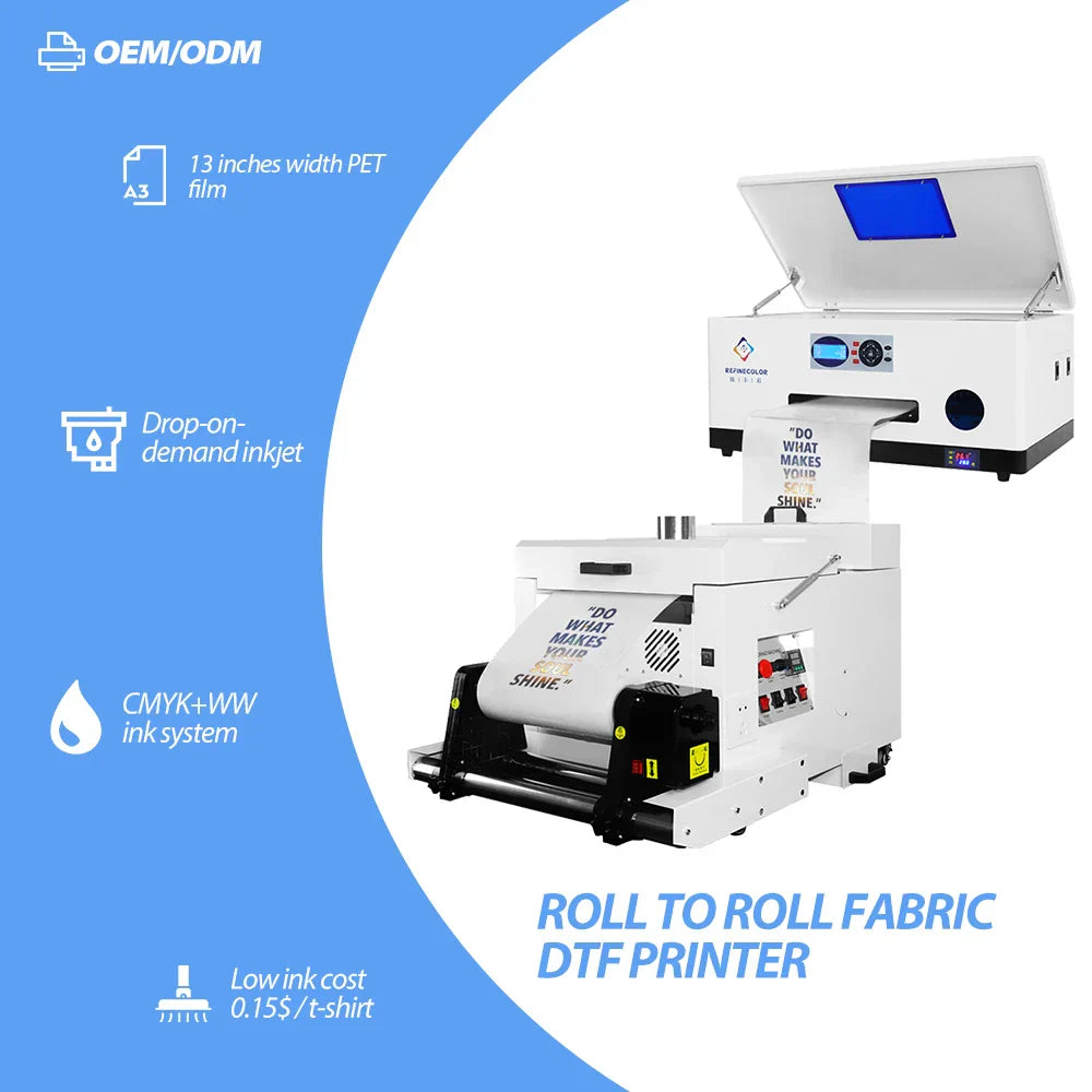 Explora la cima de la innovación en impresión con la Impresora DTF Small XP600 A3, una solución de impresión Directa a Película (DTF) de última generación diseñada tanto para entusiastas como para profesionales del estampado en tela. Esta máquina no es solo una impresora; es una puerta hacia la expansión del potencial de tu negocio y la expresión artística.
