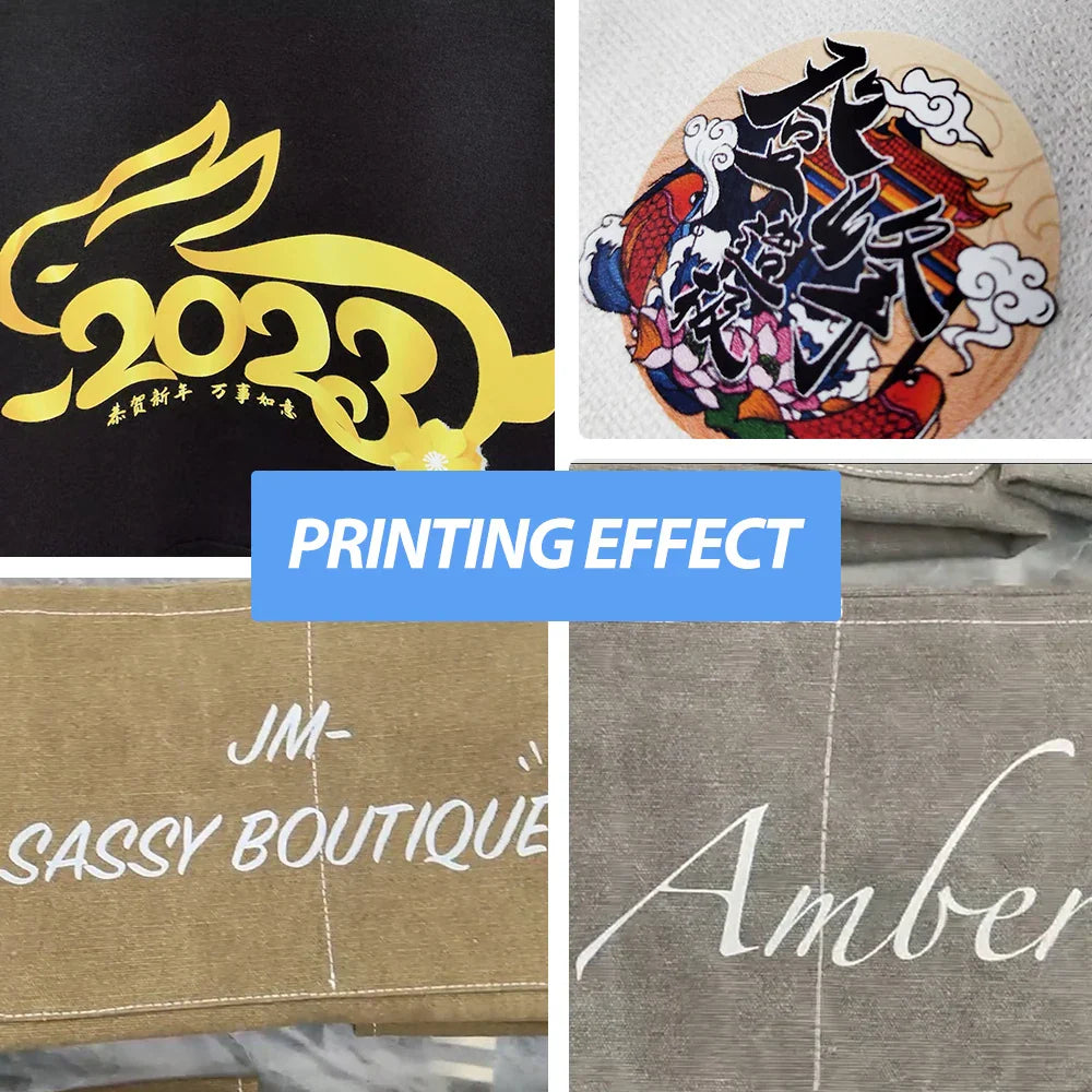 La Impresora DTF Small XP600 A3 está diseñada para ofrecer una calidad de impresión asombrosa que supera los métodos convencionales de impresión directa a prenda (DTG). Con su avanzada tecnología de transferencia de calor, puedes transferir tintas textiles vibrantes a una amplia gama de tejidos, incluyendo algodón, jeans y poliéster, con facilidad y precisión. ¿El resultado? Diseños nítidos y ricos en color que harán que tus creaciones destaquen.