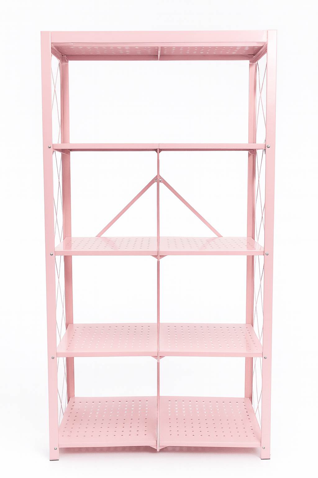 Estantería plegable rosada 71x34x157 cm | Repisas resistentes para organizar taller de emprendedores | Práctica, portátil y funcional