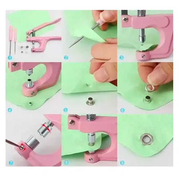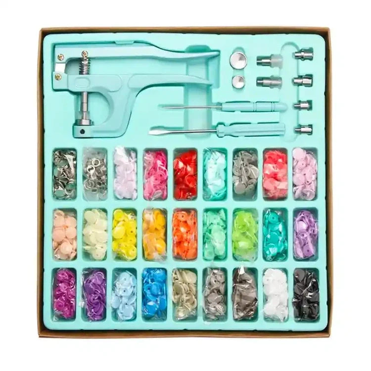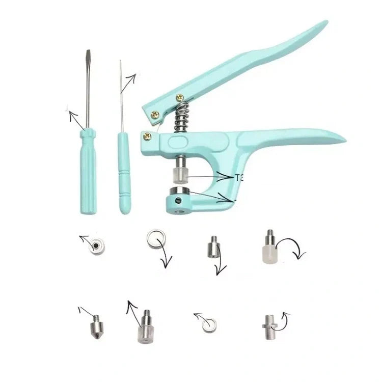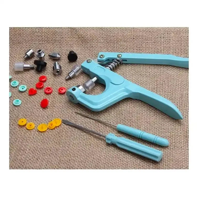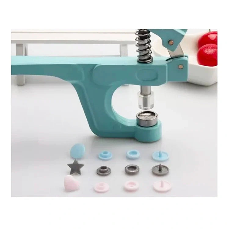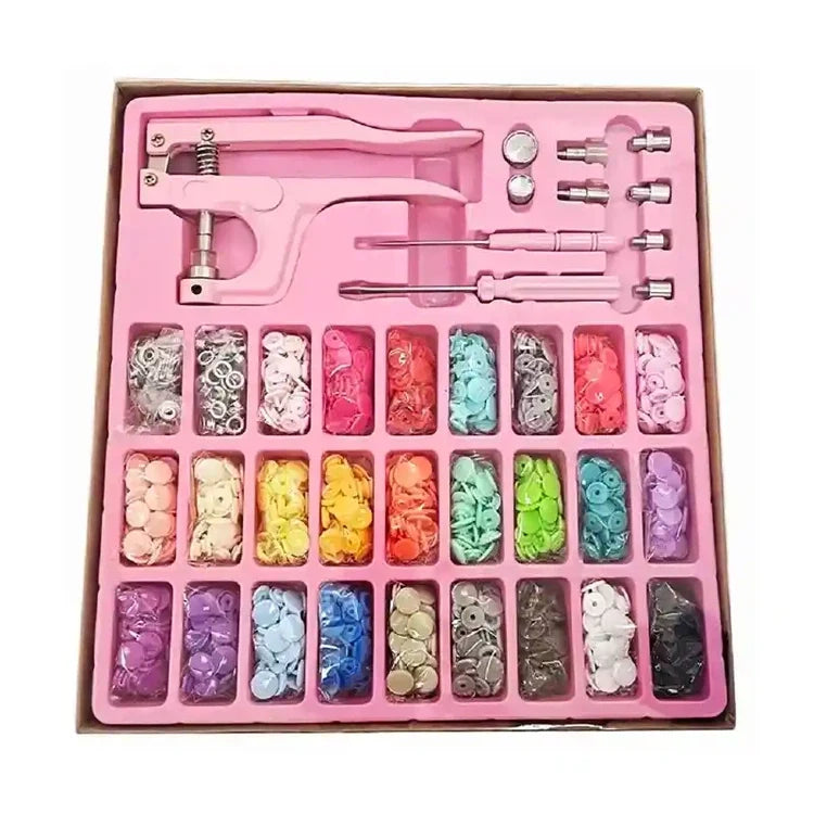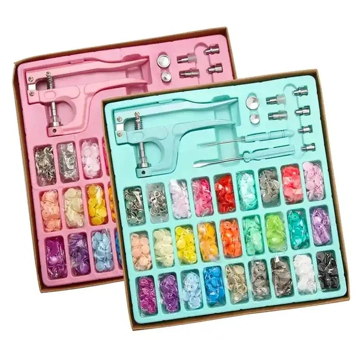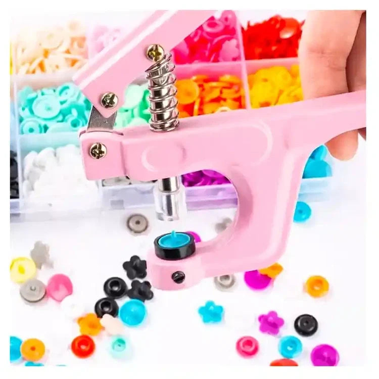 Set de alicates a presión y broches, rosa y celeste, incluye accesorios