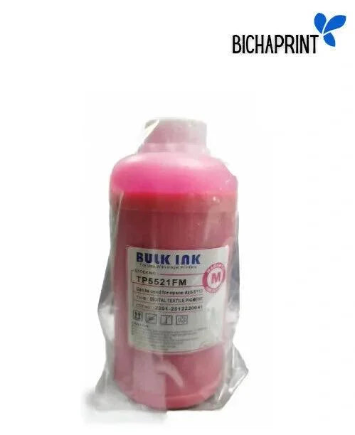 Tinta textil para trabajo en ploter para impresiones en Films para telas, el cual se transfiere a prendas de algodón logrando impresionantes resultados en término de resolución y calidad sobre las prendas.
